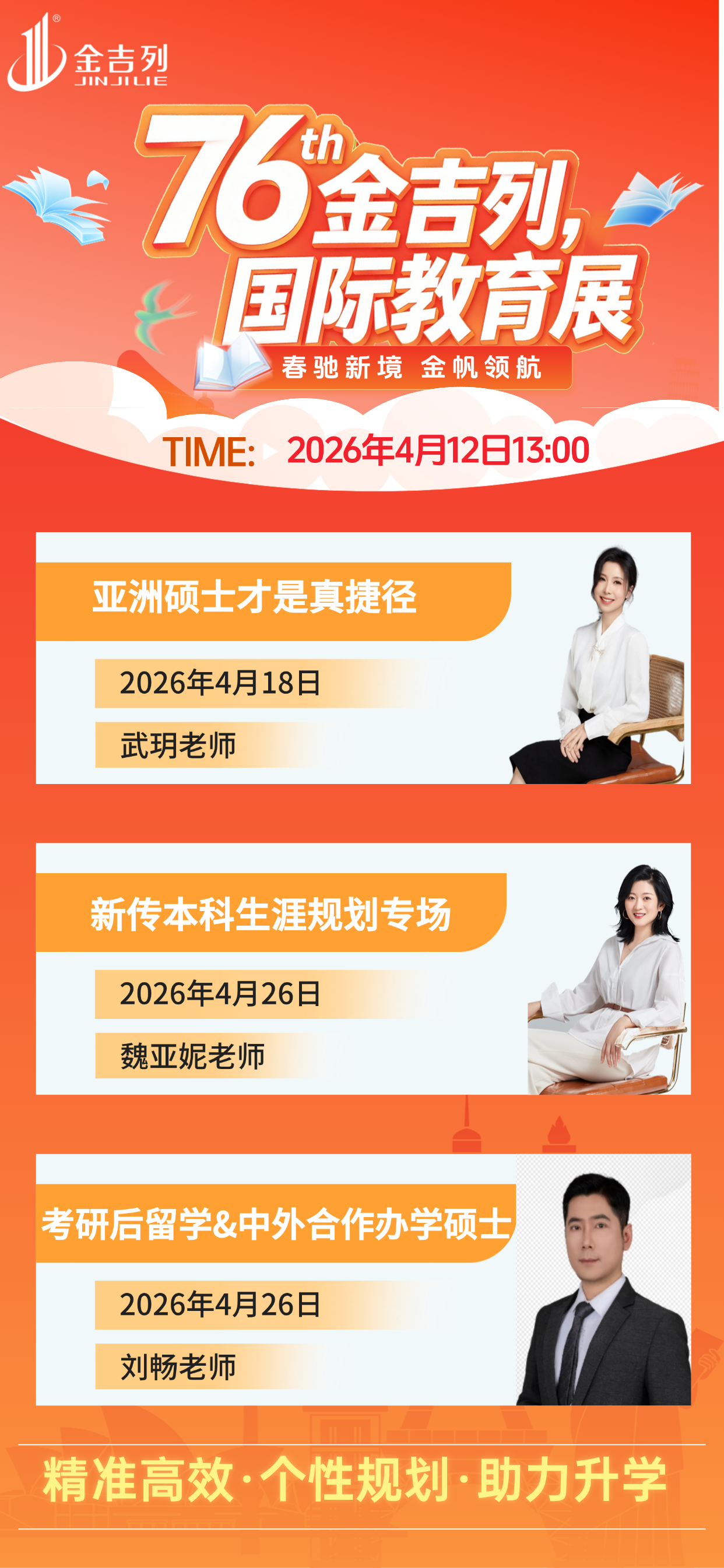 以下为金吉列洛阳分公司26年4月份活动安排,4月12日下午13:00洛阳分公司将在中国银行洛阳分行25楼举办第76届国际教育展,感兴趣的同学可以多多关注金吉列留学洛阳分公司,有任何为题可以随时咨询!!感谢大家的支持。