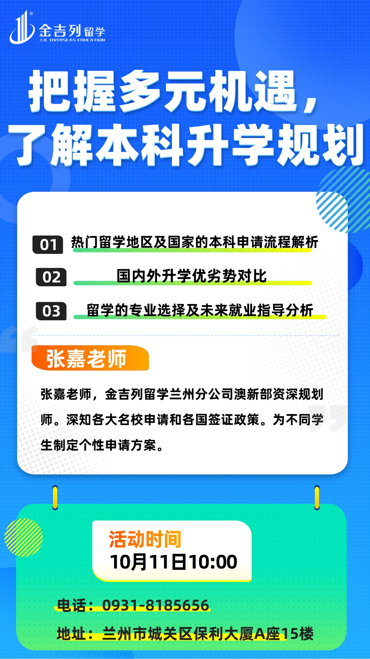 讲座地点:兰州市城关区张掖路1号保利大厦A座15楼活动时间:2025-10-11 10:00
