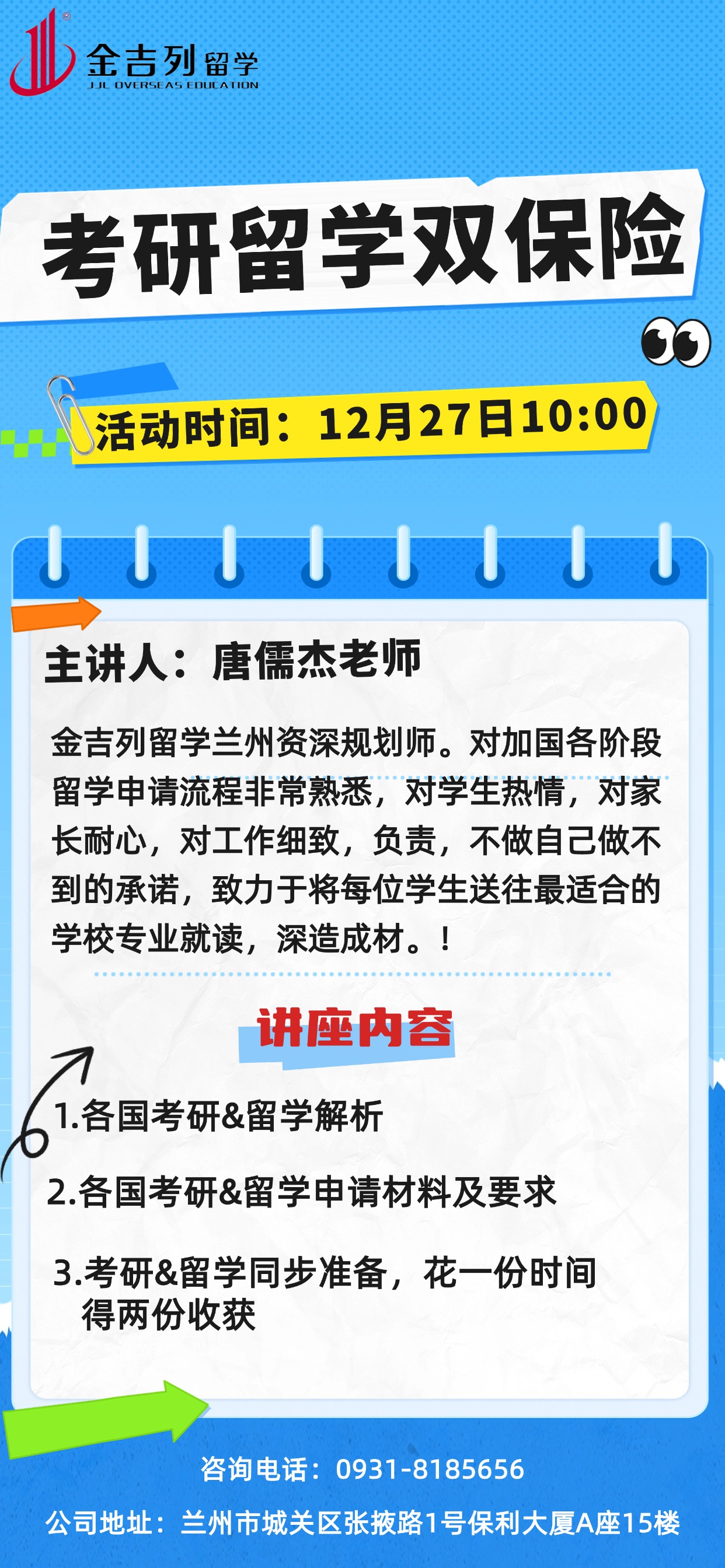 讲座地点:兰州市城关区张掖路1号保利大厦A座15楼活动时间:2025-12-27 10:00