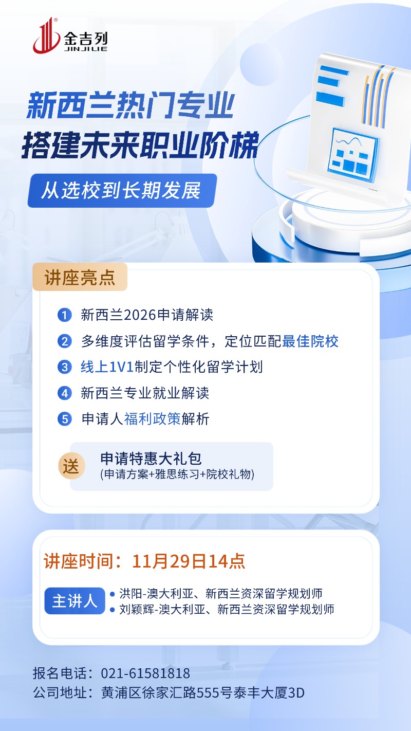 活动亮点: 新西兰2026申请解读;新西兰专业就业解读 ;申请人福利政策解析等