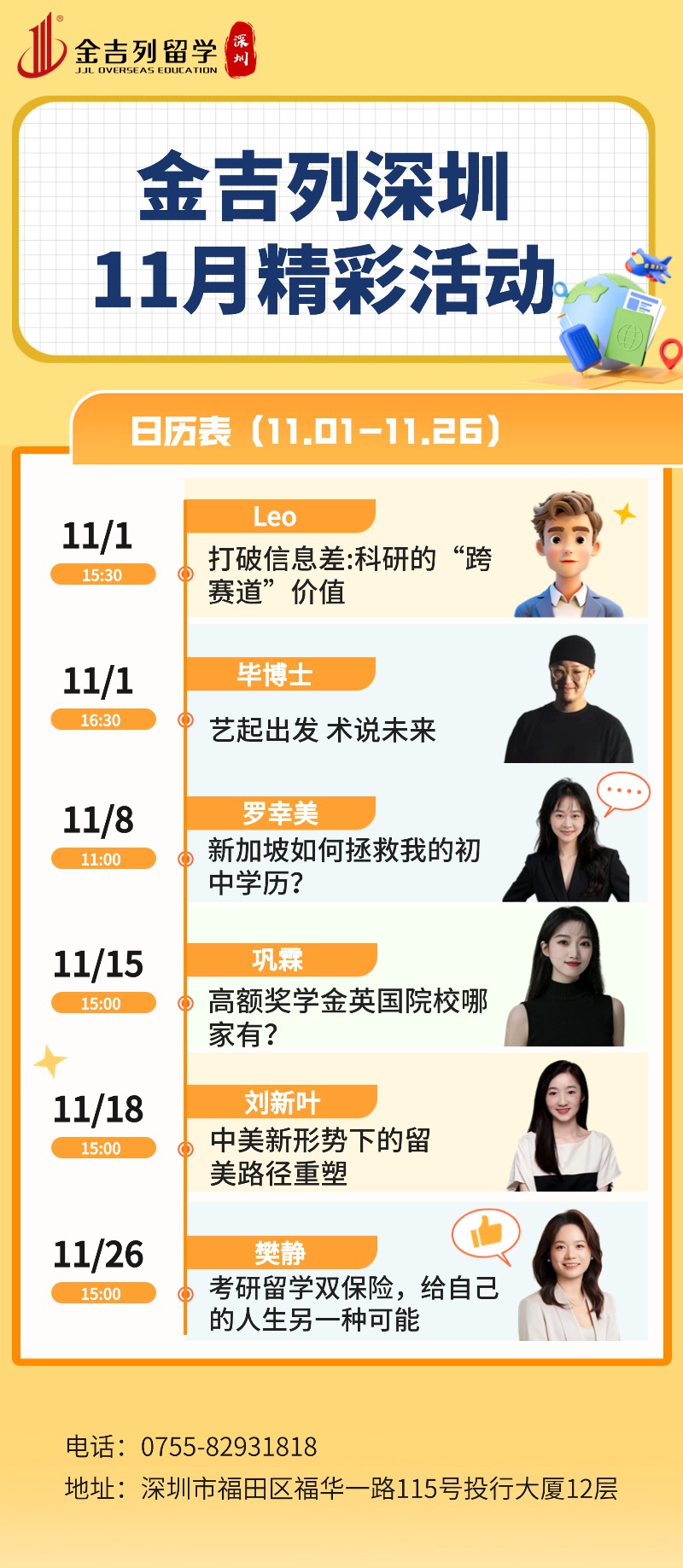 活动亮点: 艺术留学;新加坡留学;英国院校介绍;考研留学双保险