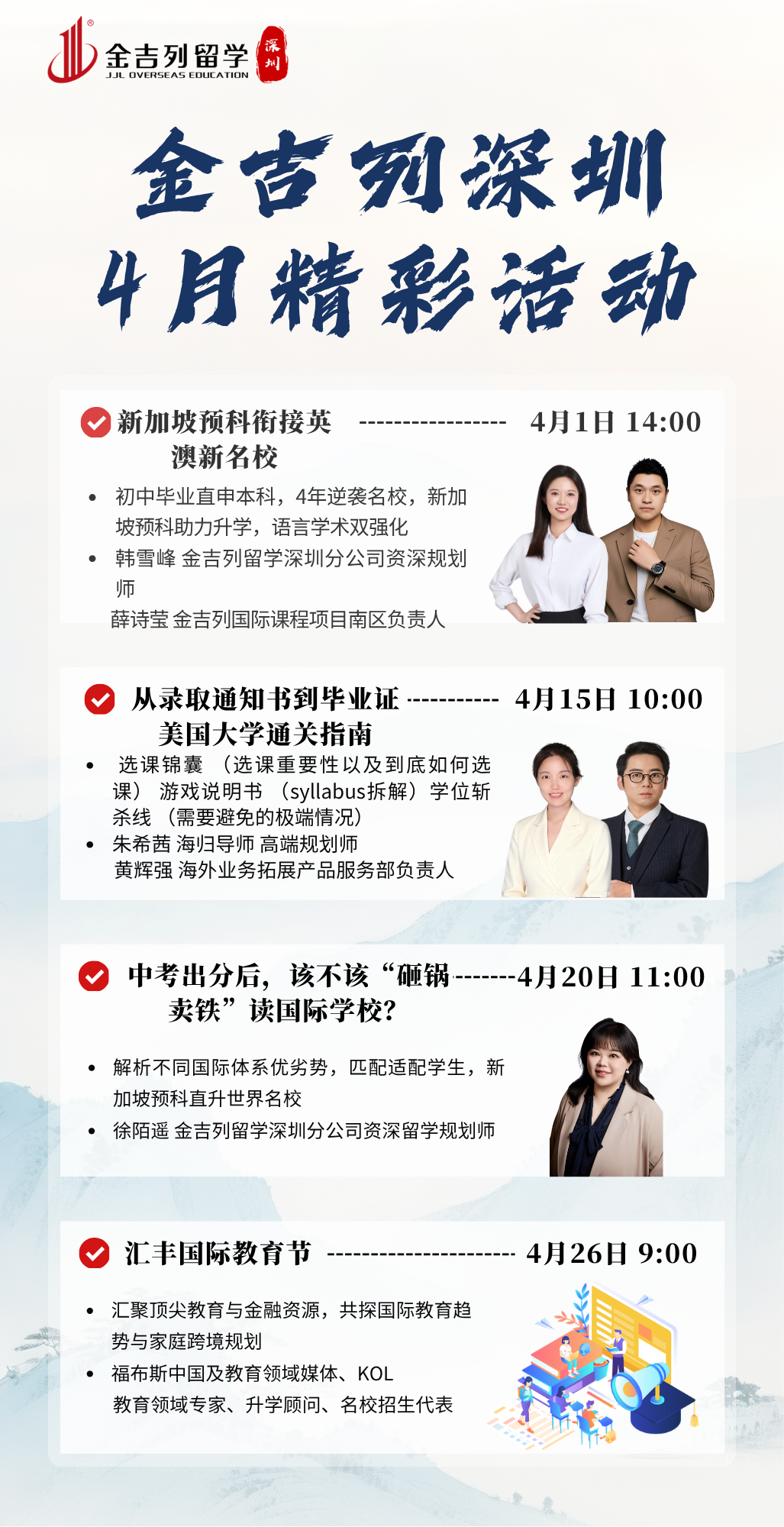 活动亮点: 新加坡预科衔接英澳新名校解析;美国大学通关指南;国际学校优势解析