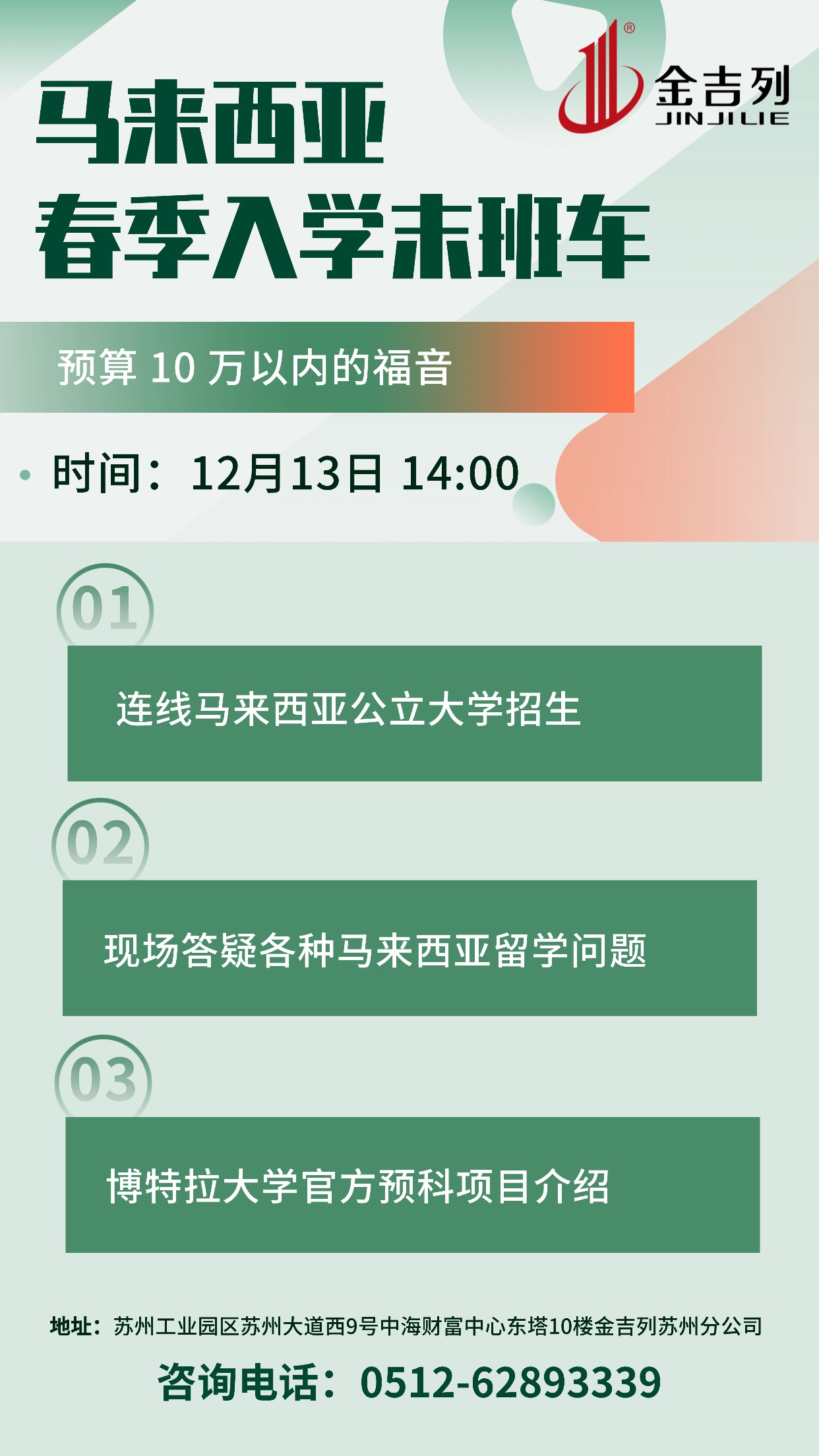 讲座地点:苏州工业园区苏州大道西9号中海财富中心东塔10楼金吉列苏州分公司活动时间:2025-12-13 14:00