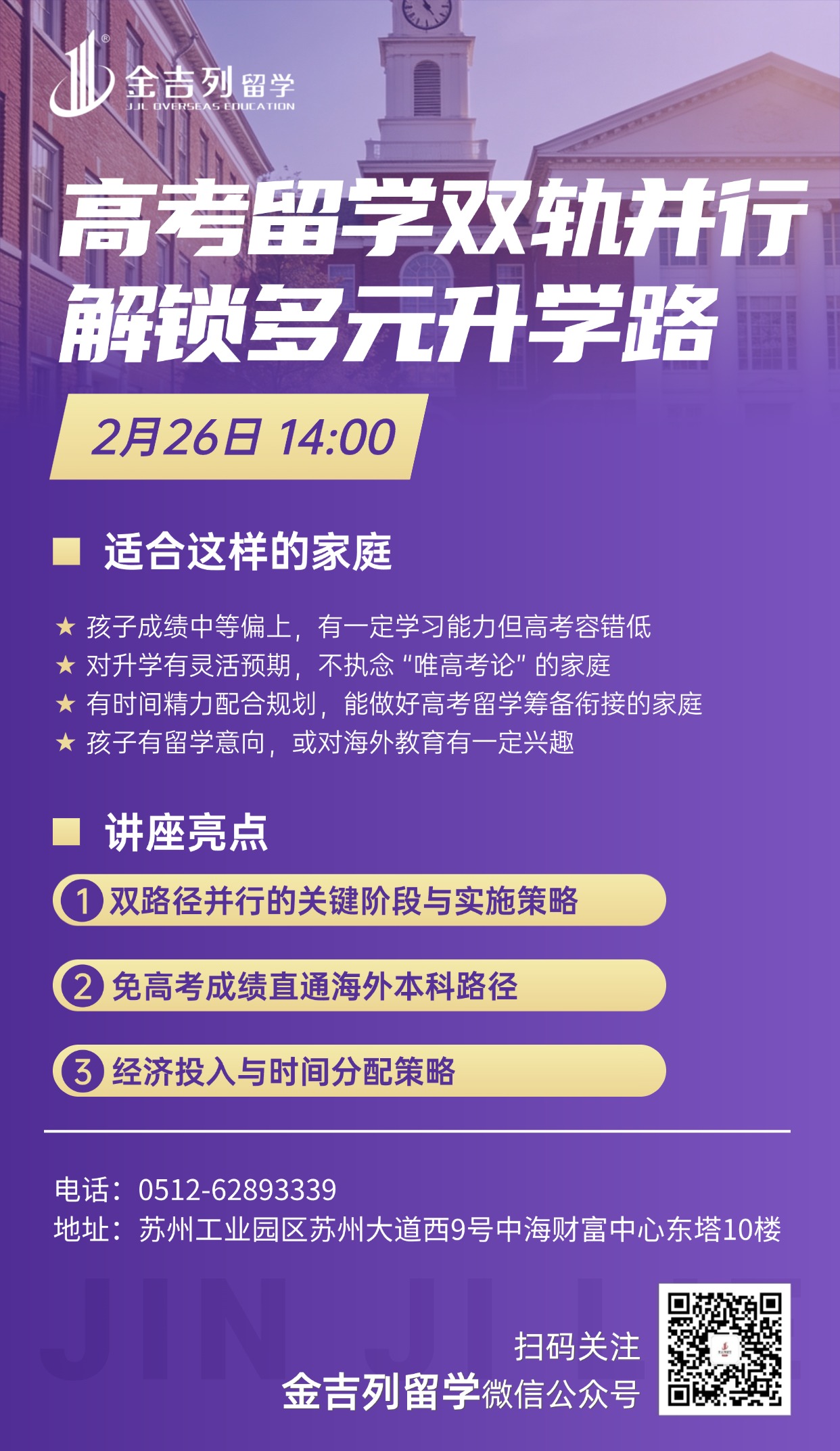 讲座地点:苏州工业园区苏州大道西9号中海财富中心东塔10楼金吉列苏州分公司活动时间:2026-02-26 14:00