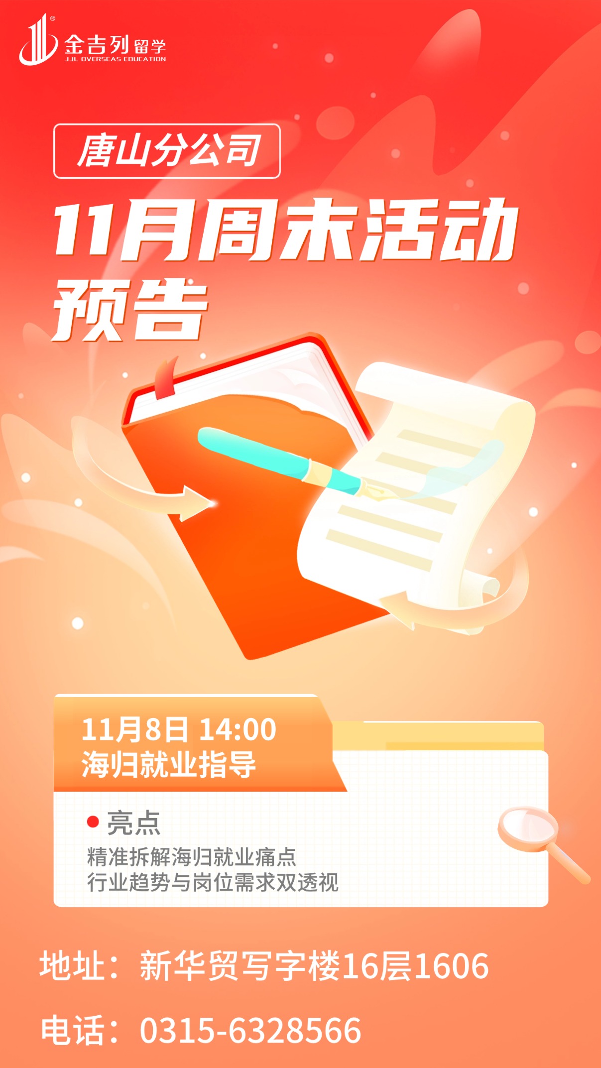 讲座地点:唐山市路南区新华贸写字楼16层1606活动时间:2025-11-08 14:00