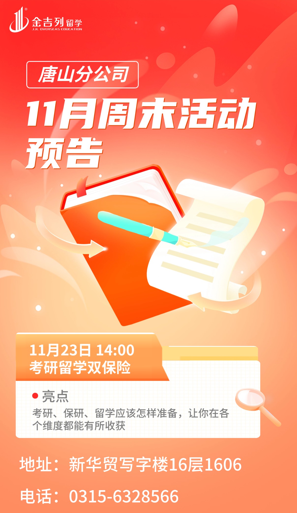 讲座地点:唐山市路南区新华贸写字楼16层1606活动时间:2025-11-23 14:00