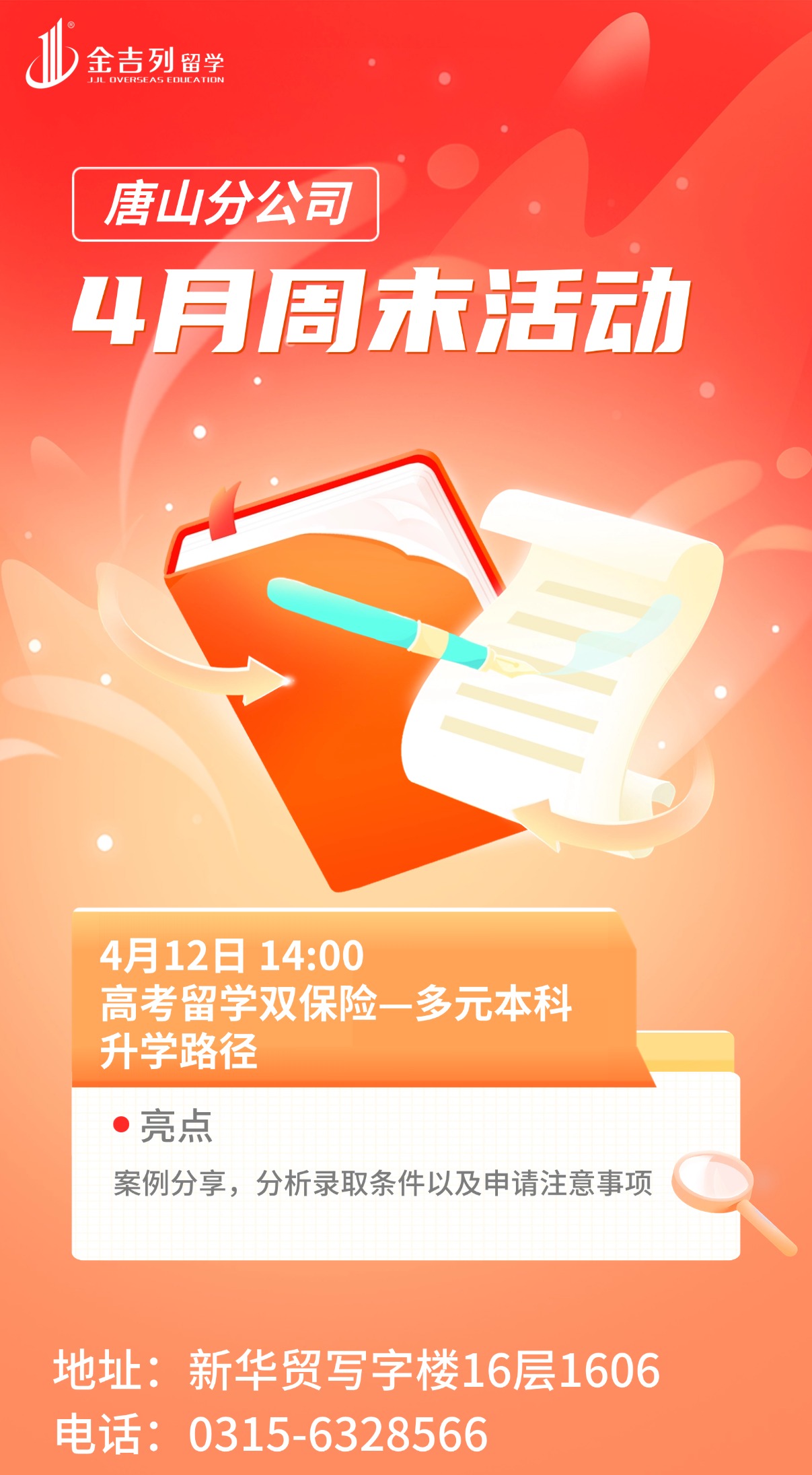 讲座地点:唐山市路南区新华贸写字楼16层1606活动时间:2026-04-12 14:00