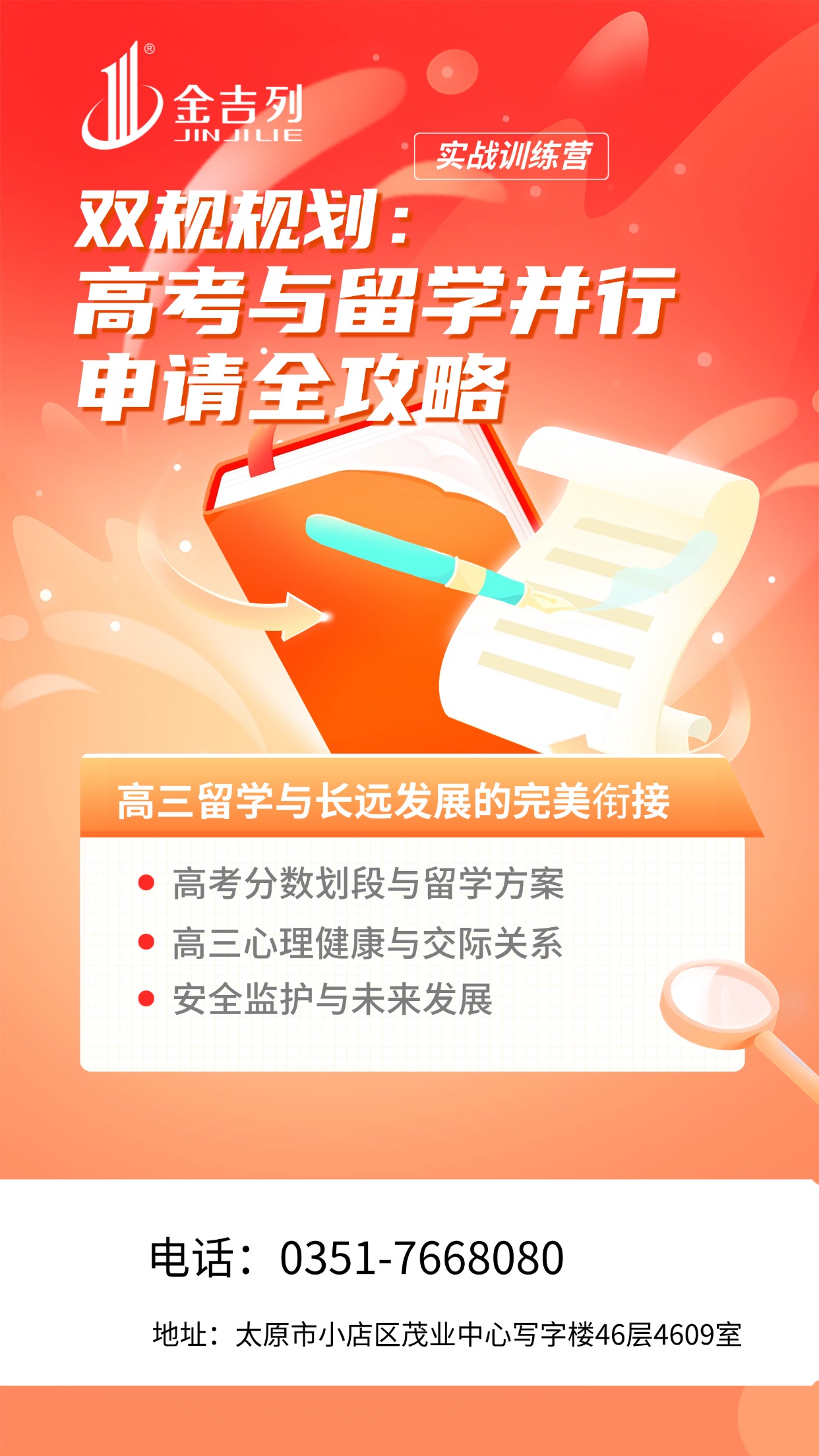 讲座地点:金吉列留学太原分公司(太原市小店区茂业中心写字楼46层4609室)活动时间:2026-01-10 10:00