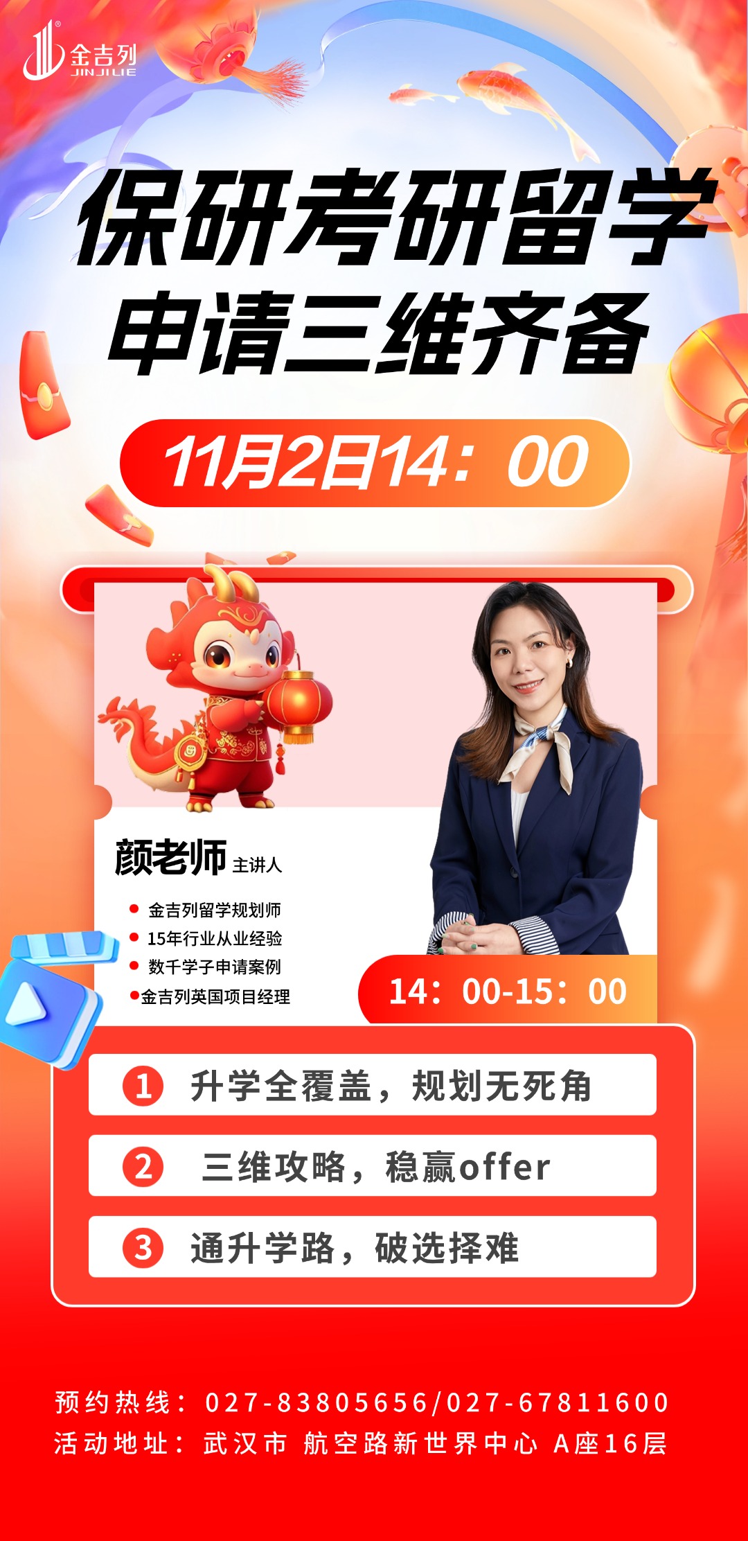 讲座地点:武汉市洪山区珞瑜路10号群光中心写字楼23层/武汉市航空路新世界中心A座16层活动时间:2025-11-02 14:00