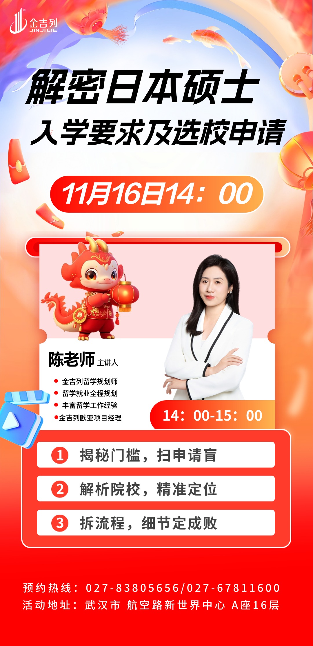 讲座地点:武汉市洪山区珞瑜路10号群光中心写字楼23层/武汉市航空路新世界中心A座16层活动时间:2025-11-16 14:00