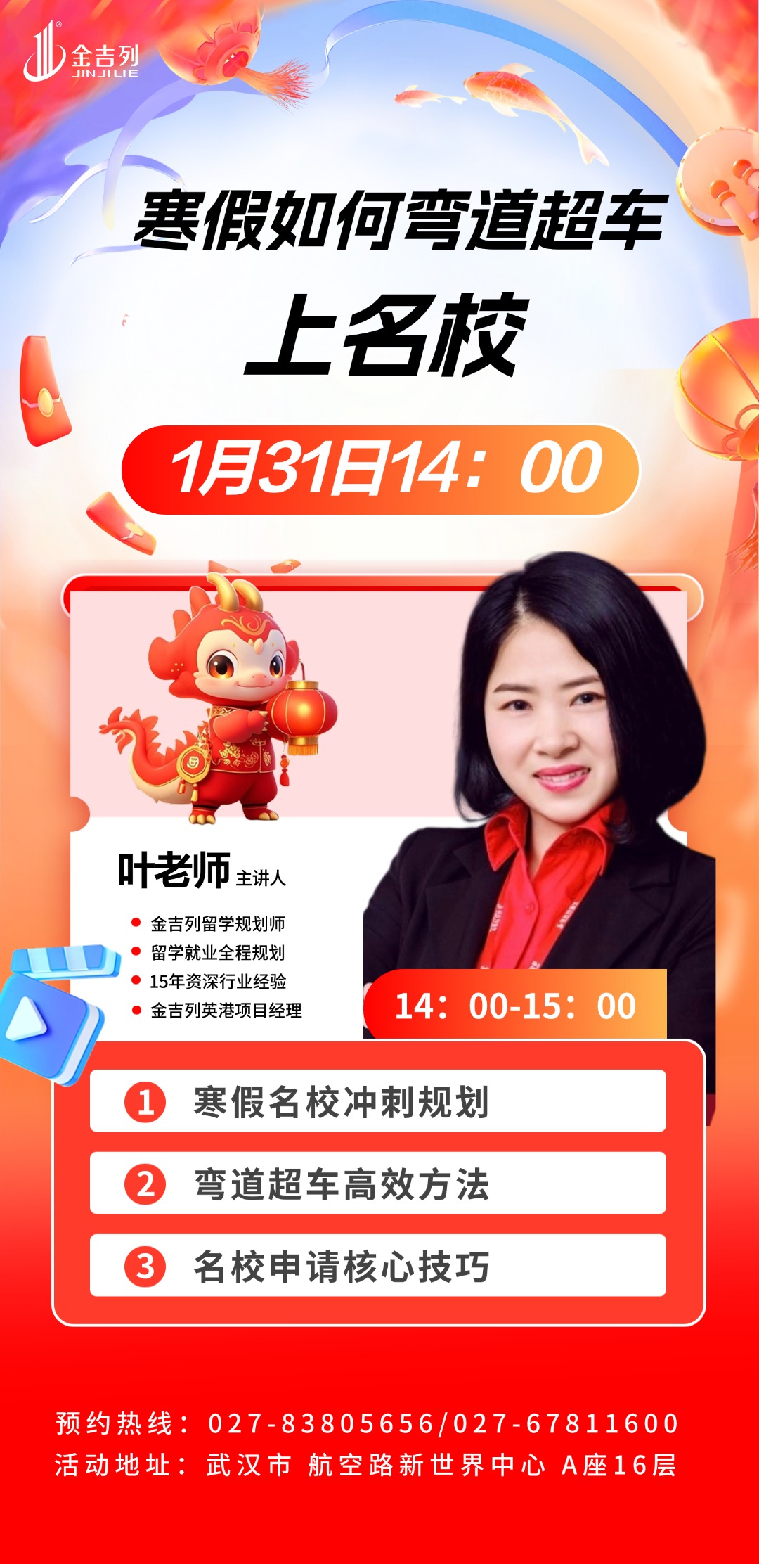 讲座地点:武汉金吉列留学活动时间:2026-01-31 14:00
