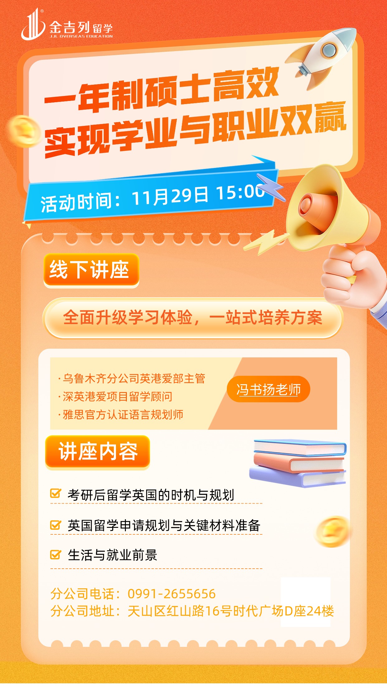 活动亮点: 考研后英国留学解析;英国留学申请规划;英国留学生活及就业前景