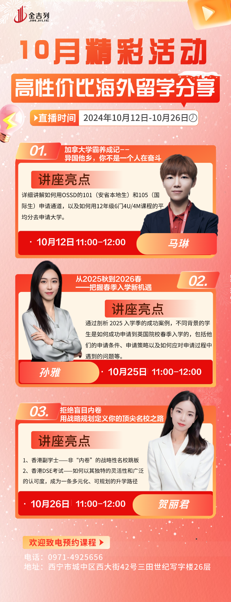 活动亮点: OSSD申请通道专业讲解,春季入学季,香港副学士,香港DSE考试,等