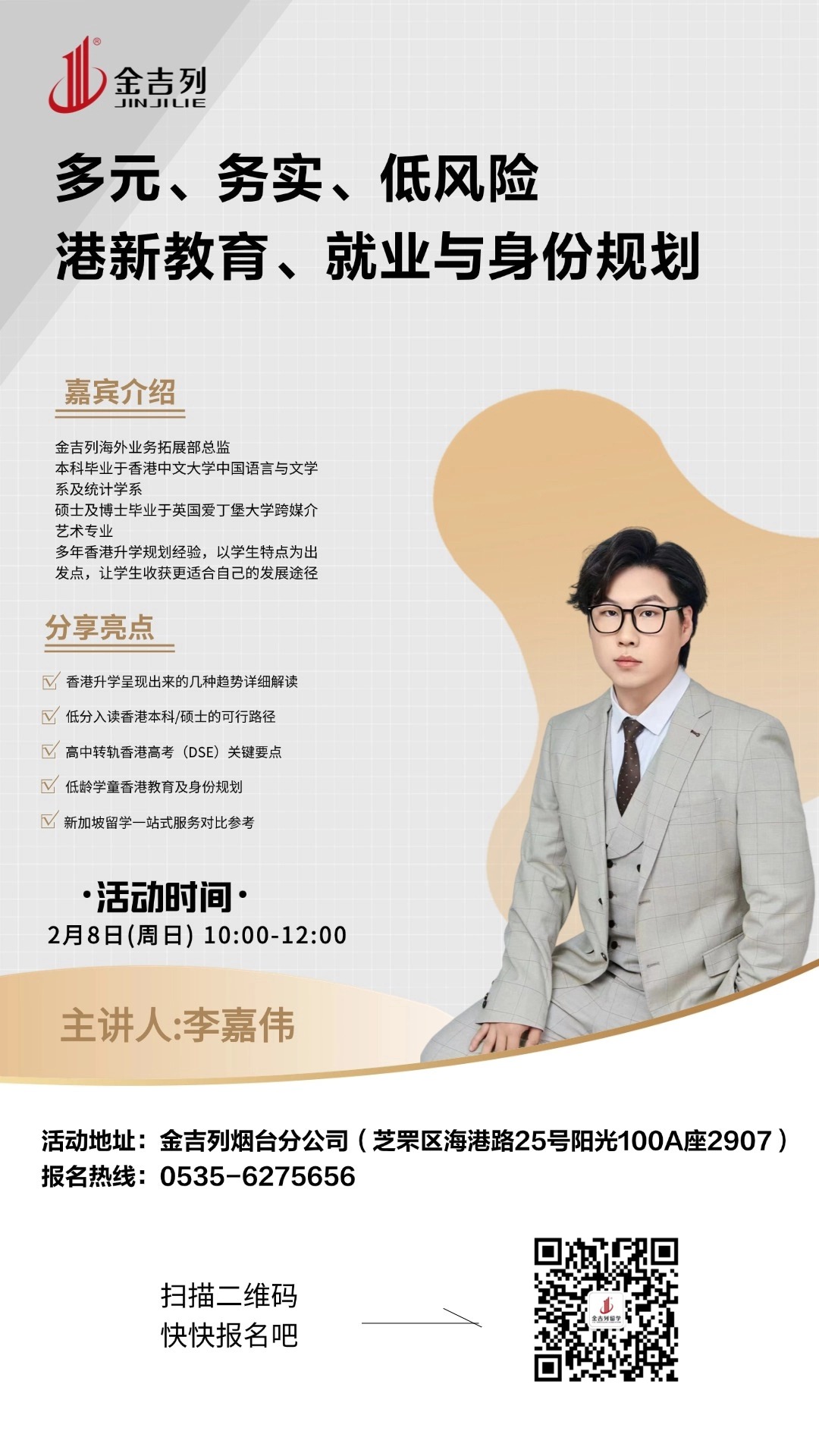 活动亮点: 香港升学趋势;低分入读香港本硕路径;低龄香港教育及身份规划;新加坡留学
